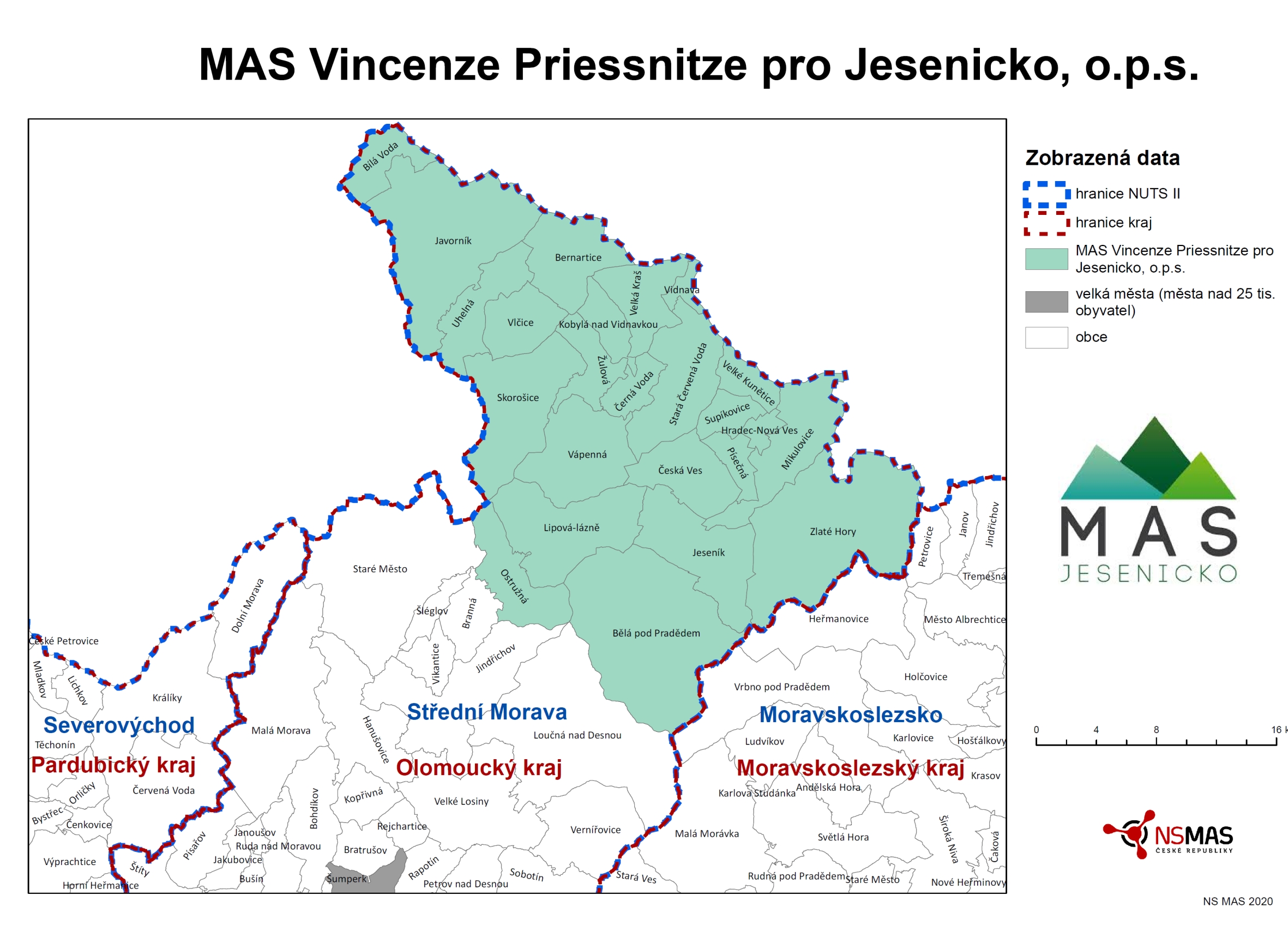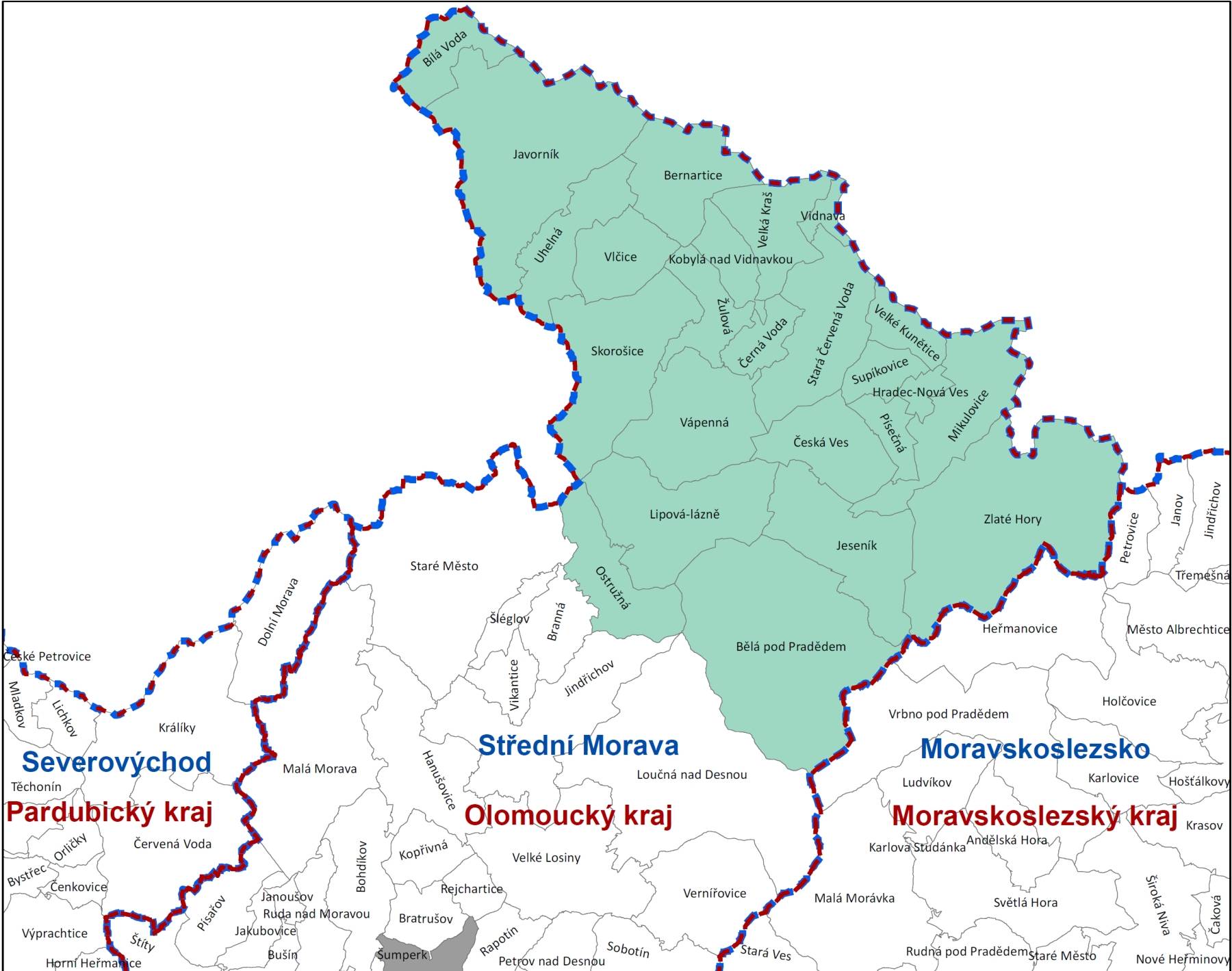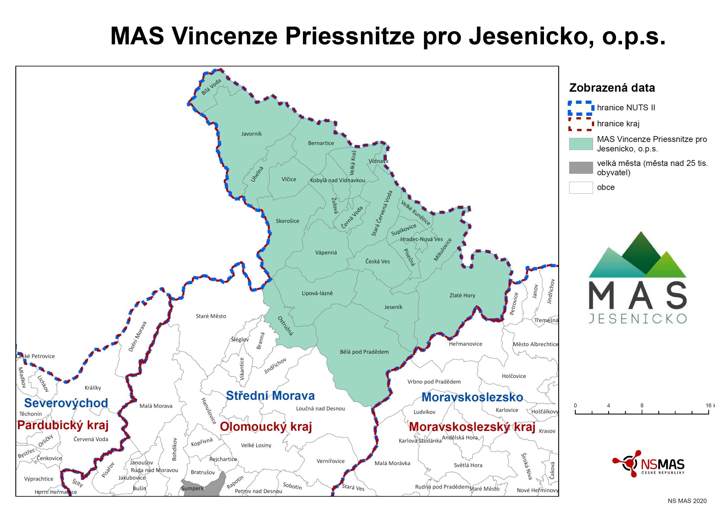 Územní působnostBělá pod Pradědem, Bernartice, Bílá Voda, Černá Voda, Česká Ves, Hradec - Nová Ves, Javorník, Jeseník, Kobylá nad Vidnavkou, Lipová-lázně, Mikulovice, Ostružná, Písečná, Skorošice, Stará Červená Voda, Supíkovice, Uhelná, Vápenná, Velká Kraš, Velké Kunětice, Vidnava, Vlčice, Zlaté Hory a Žulová. Území představuje 4 mikroregionu - Javornicko, Jesenicko, Zlatohorsko a Žulovsko. | ||||||||