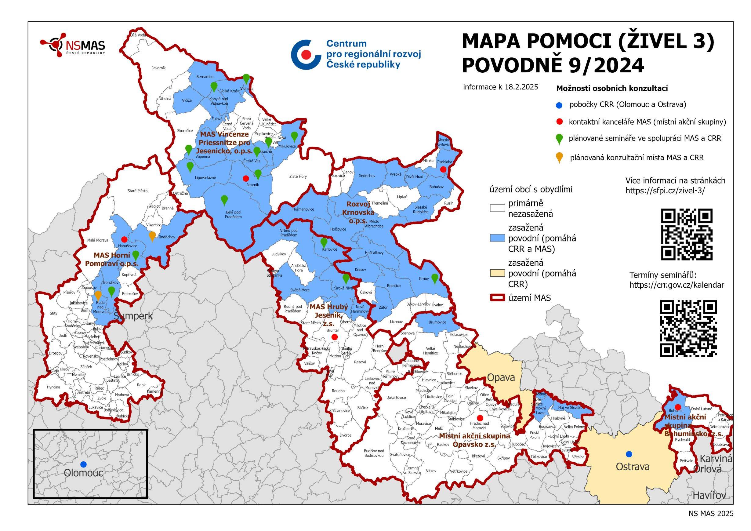 Program Živel 3 pomáhá oblastem postiženým povodněmiK čemu program ŽIVEL 3 slouží?Program ŽIVEL 3 pomáhá s obnovou bydlení po povodních. Kdo může žádat?Podat si žádost v programu ŽIVEL 3 mohou majitelé, spolumajitelé nebo SVJ jejichž nemovitost byla poškozena povodní. Co mohu získat?V rámci programu ŽIVEL 3 mohu žádat o dotaci, úvěr, nebo o kombinaci dotace a úvěru. Kde získám potřebné informace k ŽIVLU 3?Potřebné informace Vám poskytnou buď pracovníci MAS, nebo pracovníci CRR Olomouc (Centrum pro regionální rozvoj). Veškeré potřebné dokumenty, pravidla pro žadatele a přílohy najdete na stránkách Státního fondu pro podporu investic. Kontaktní osoby MAS Vincenze Priessnitze pro Jesenicko
